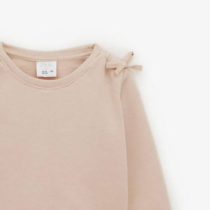 ZR Light Tea Pink Shoulder Bow Sweatshirt 939