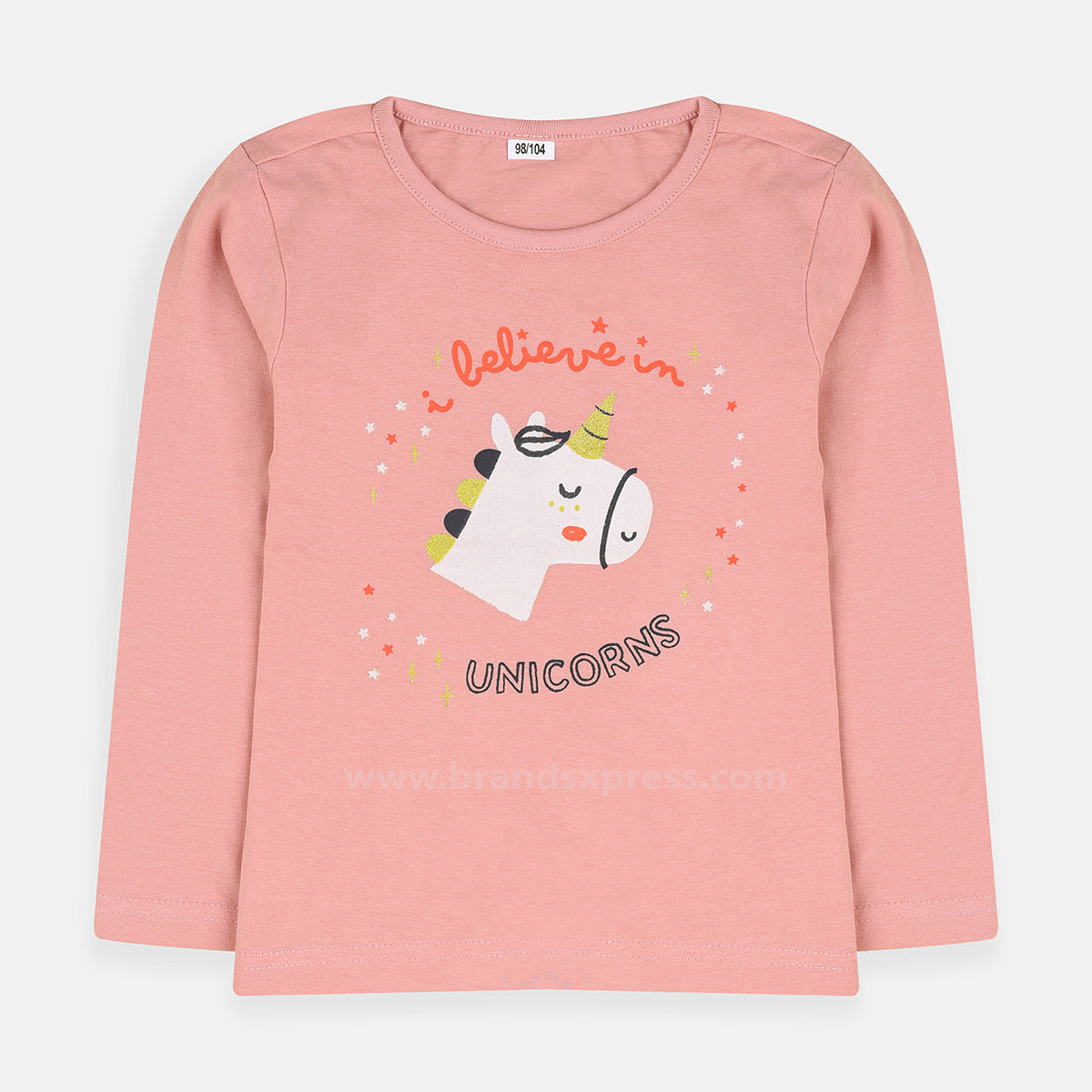 - ZE Believe In Unicorn Tea Pink Full Sleeves T shirt 7762