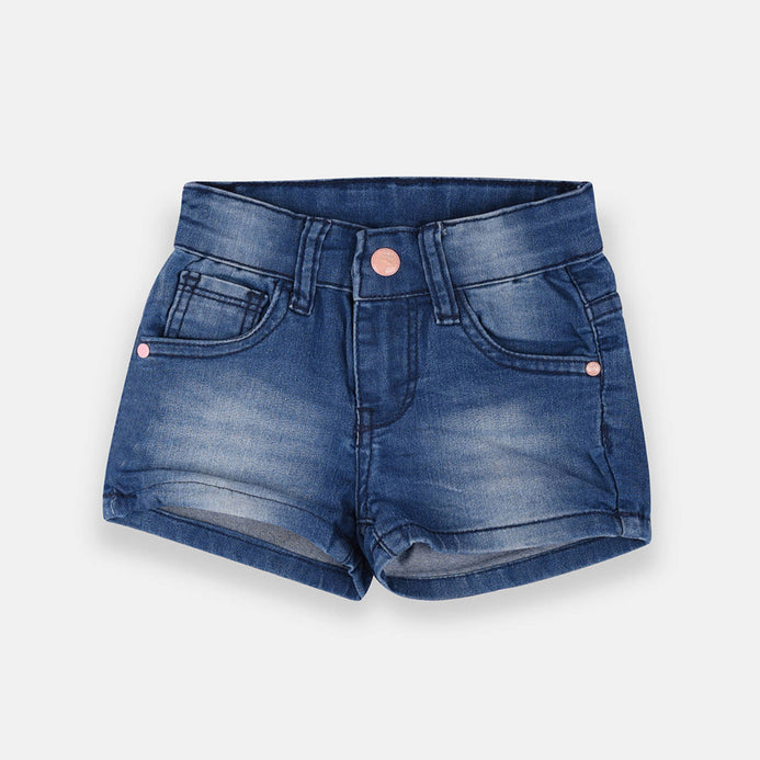- Zee Glitter Button Mid Blue Girls Shorts 1237