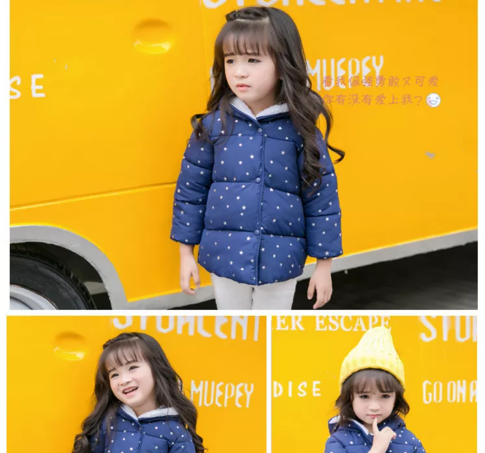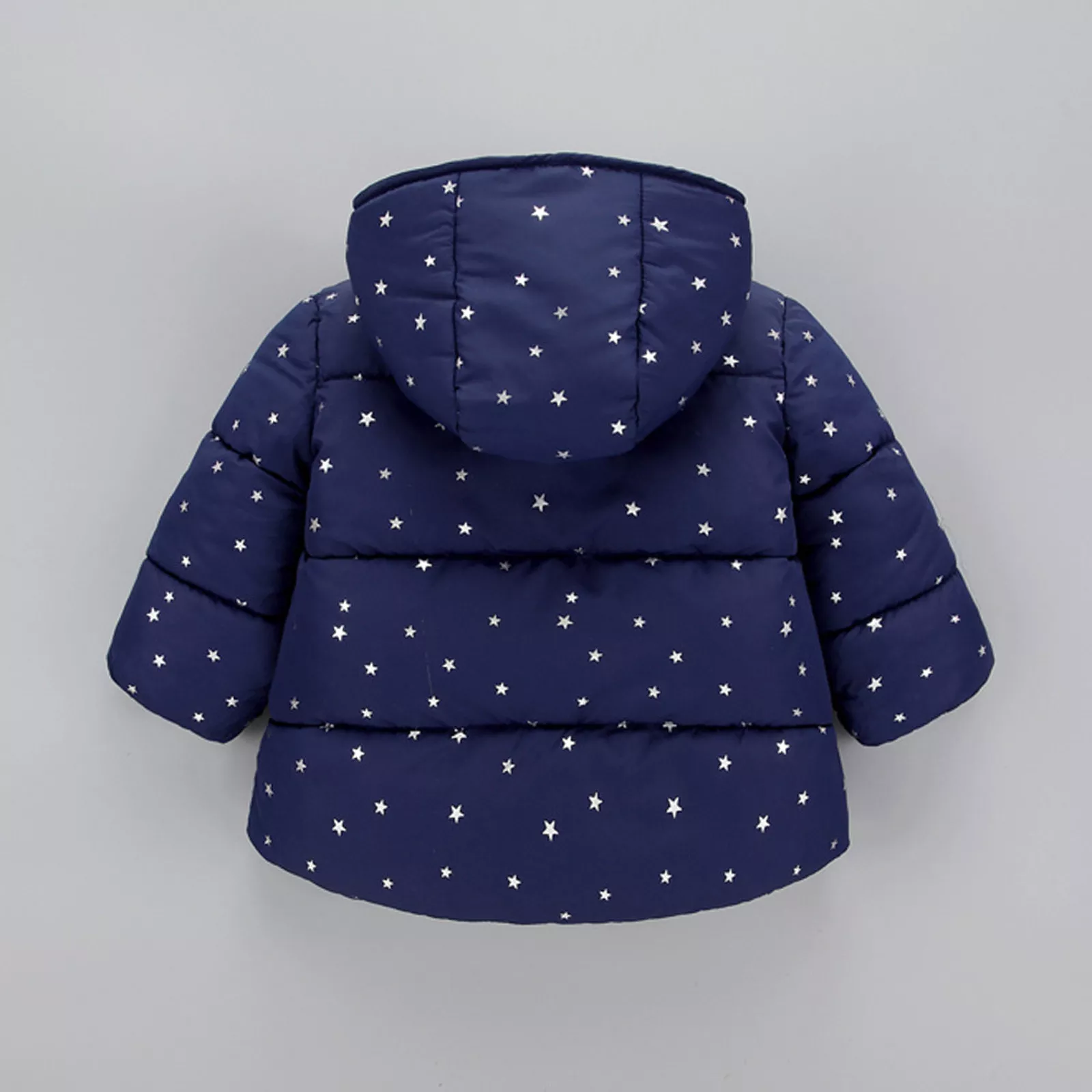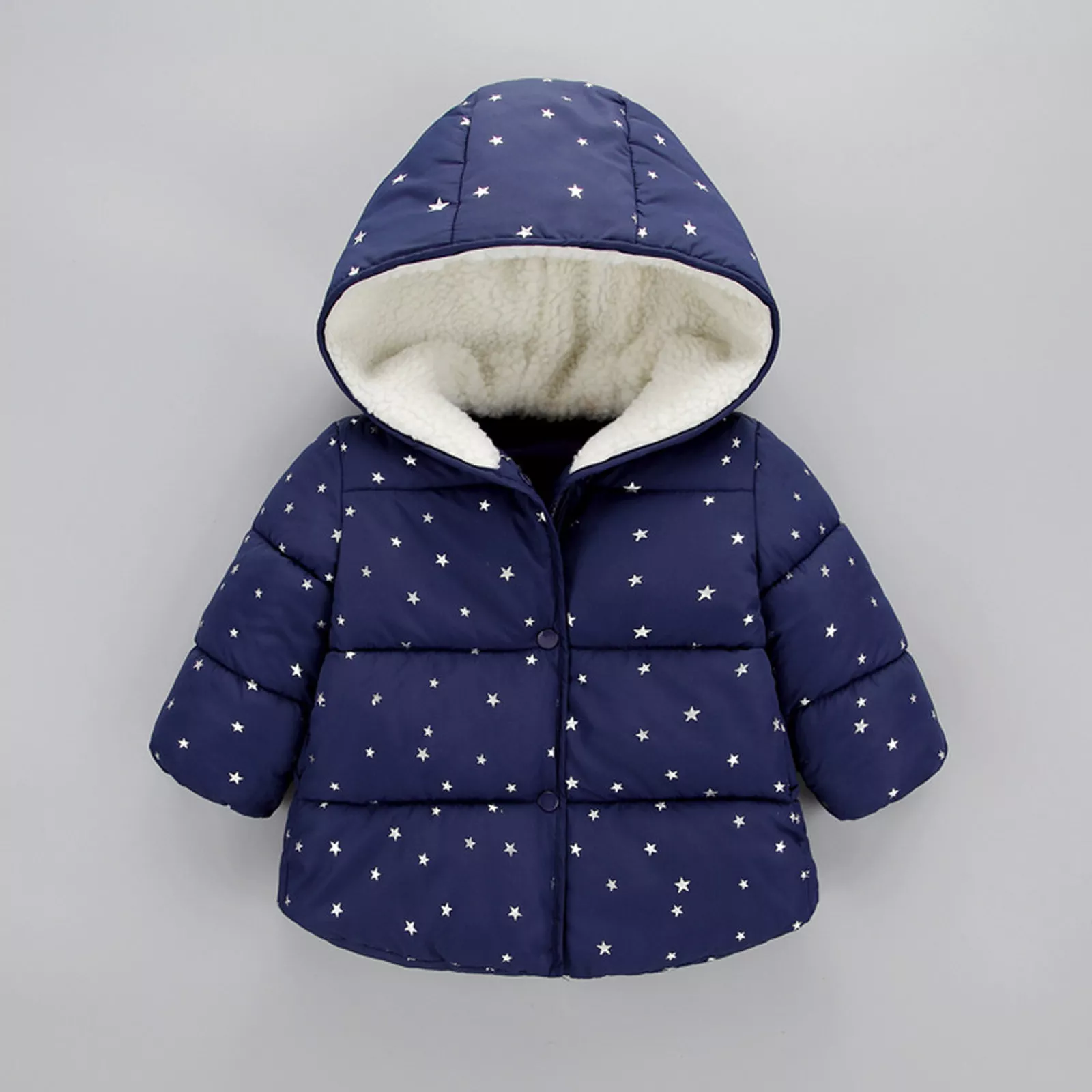 - ZJH Silver Stars Sherpa Hooded Navy Blue Puffer Jacket 7653