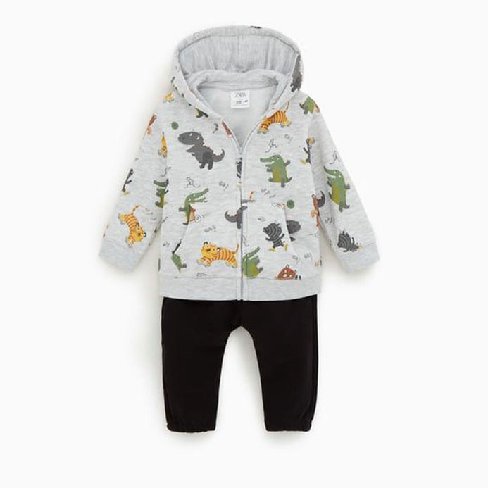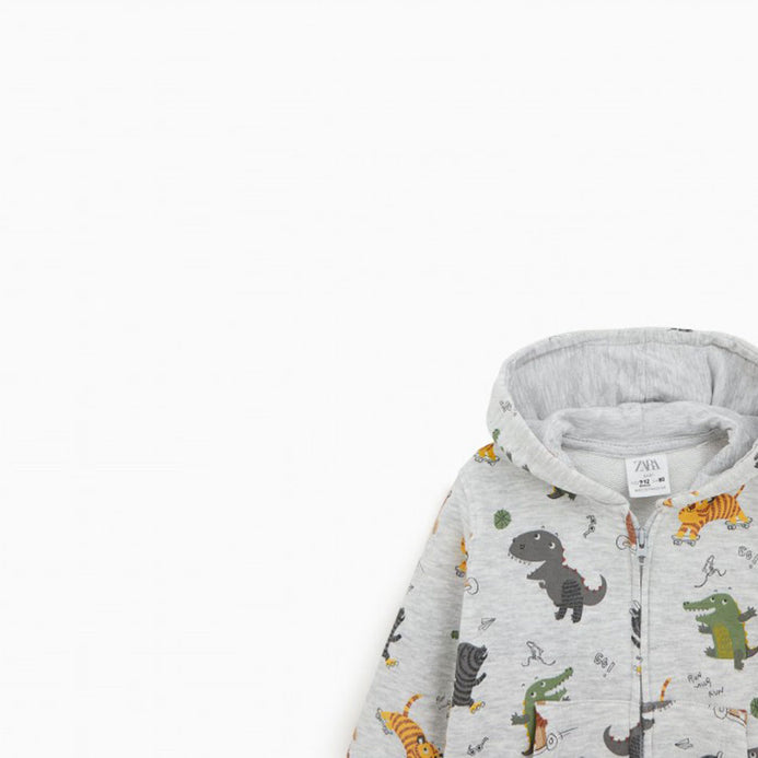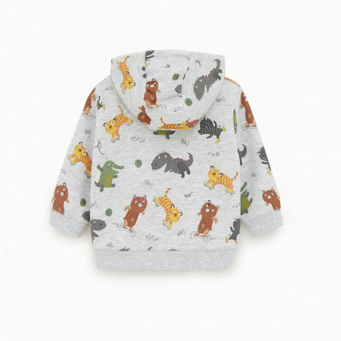 - ZR Animal Printed Grey Zipper Hoodie 3376
