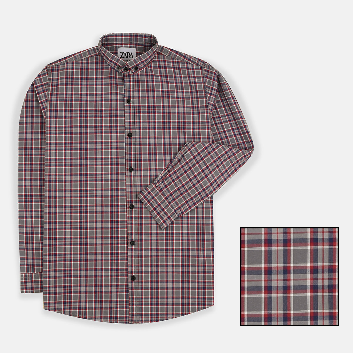 - ZR Black & Red Check Grey Casual Shirt 4687