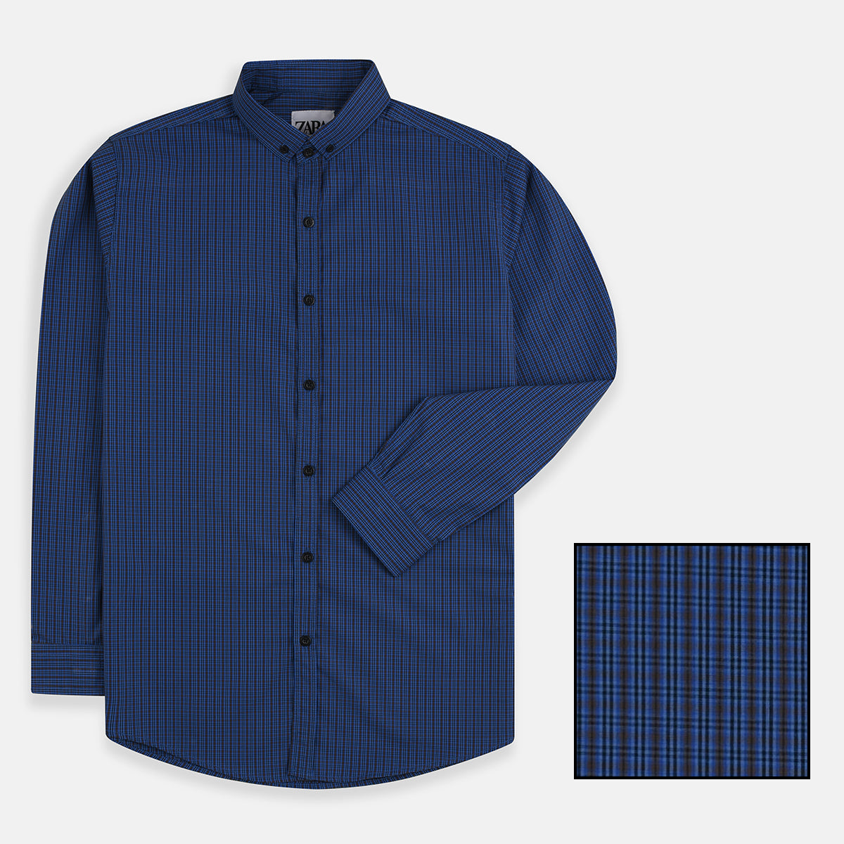 - ZR Mini Lines Check Blue Casual Shirt 4685