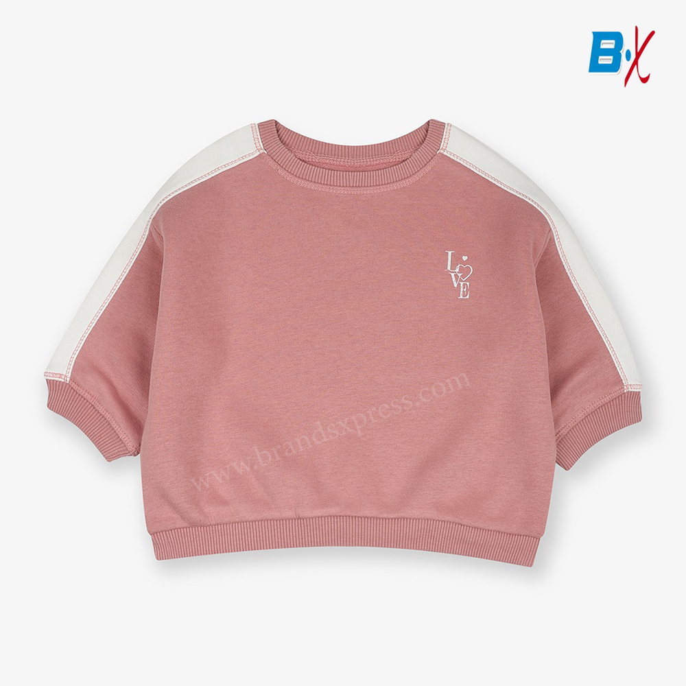 ZR Shoulder Panel Love Print Loose Short Pink Fleece Sweatshirt 9925