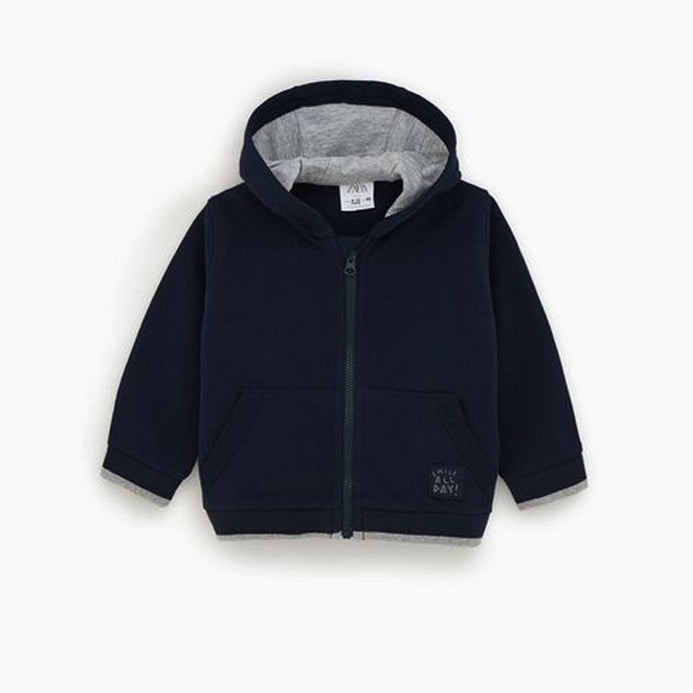 - ZR Smile All Day Patch Navy Blue Zipper Hoodie 3379
