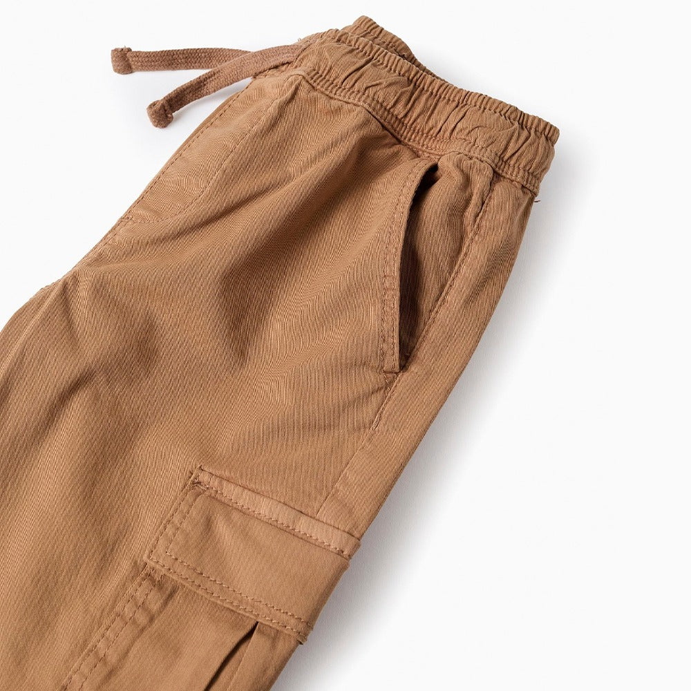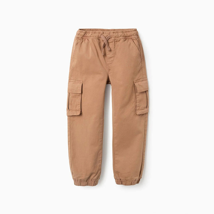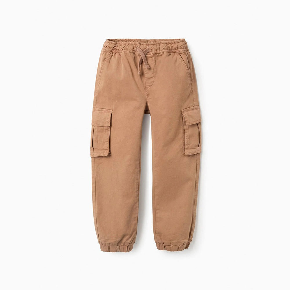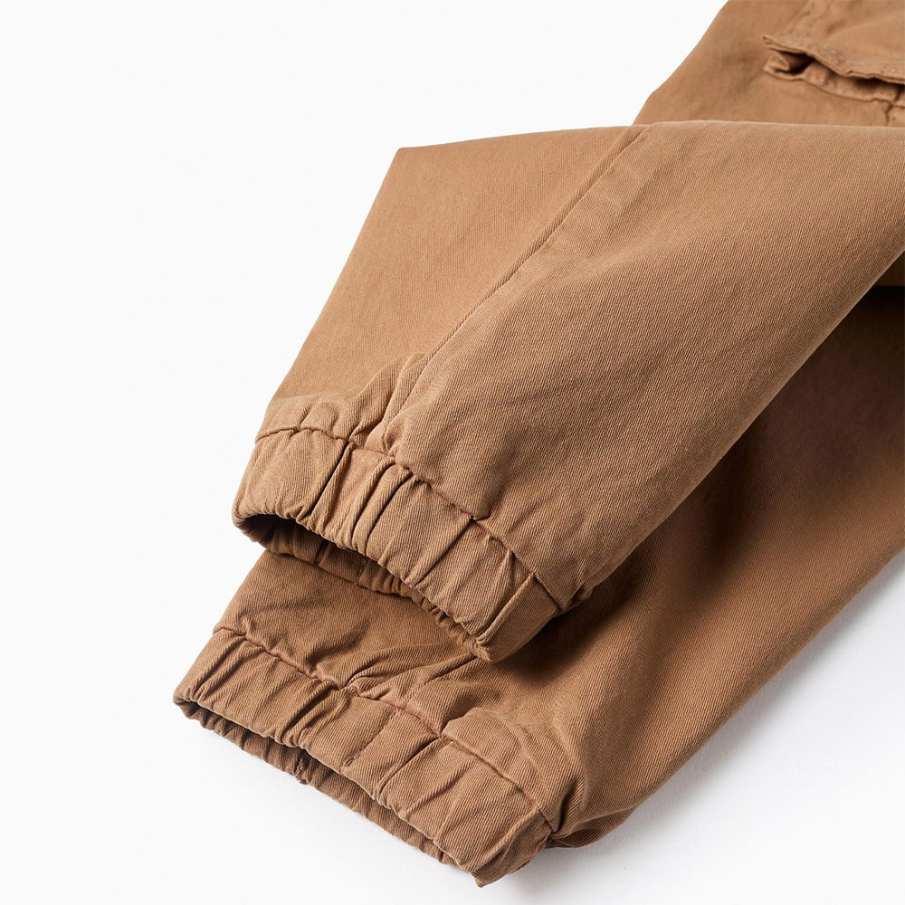 ZY Cargo Pocket Style Elastic Wasit with Cord Brown Jogger Pant 14128