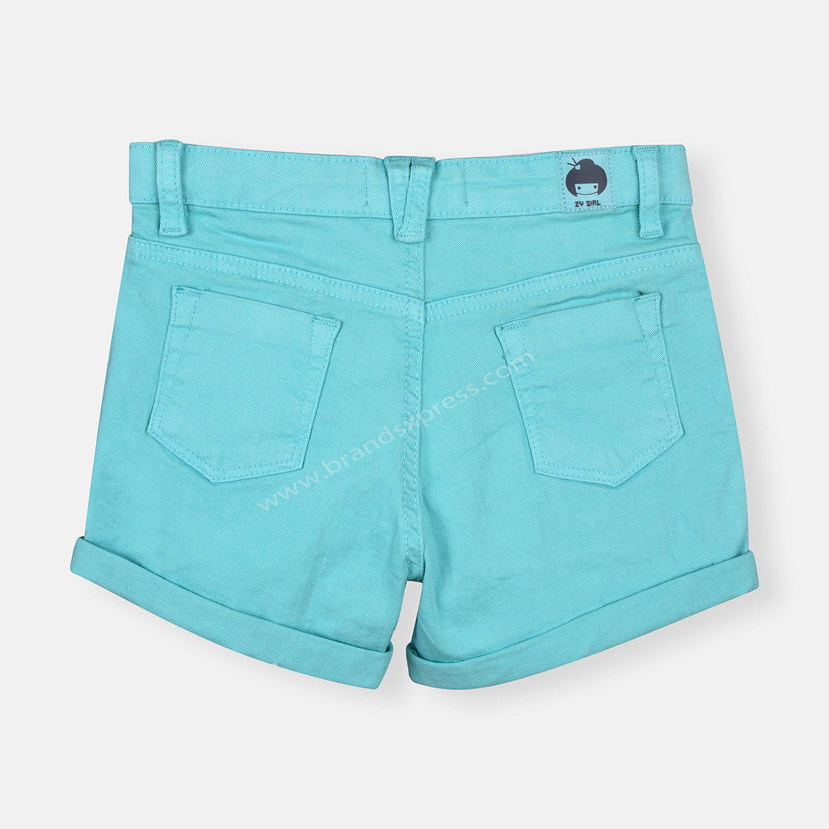 ZY Folded Bottom Turquoise Girls Cotton Shorts 8788