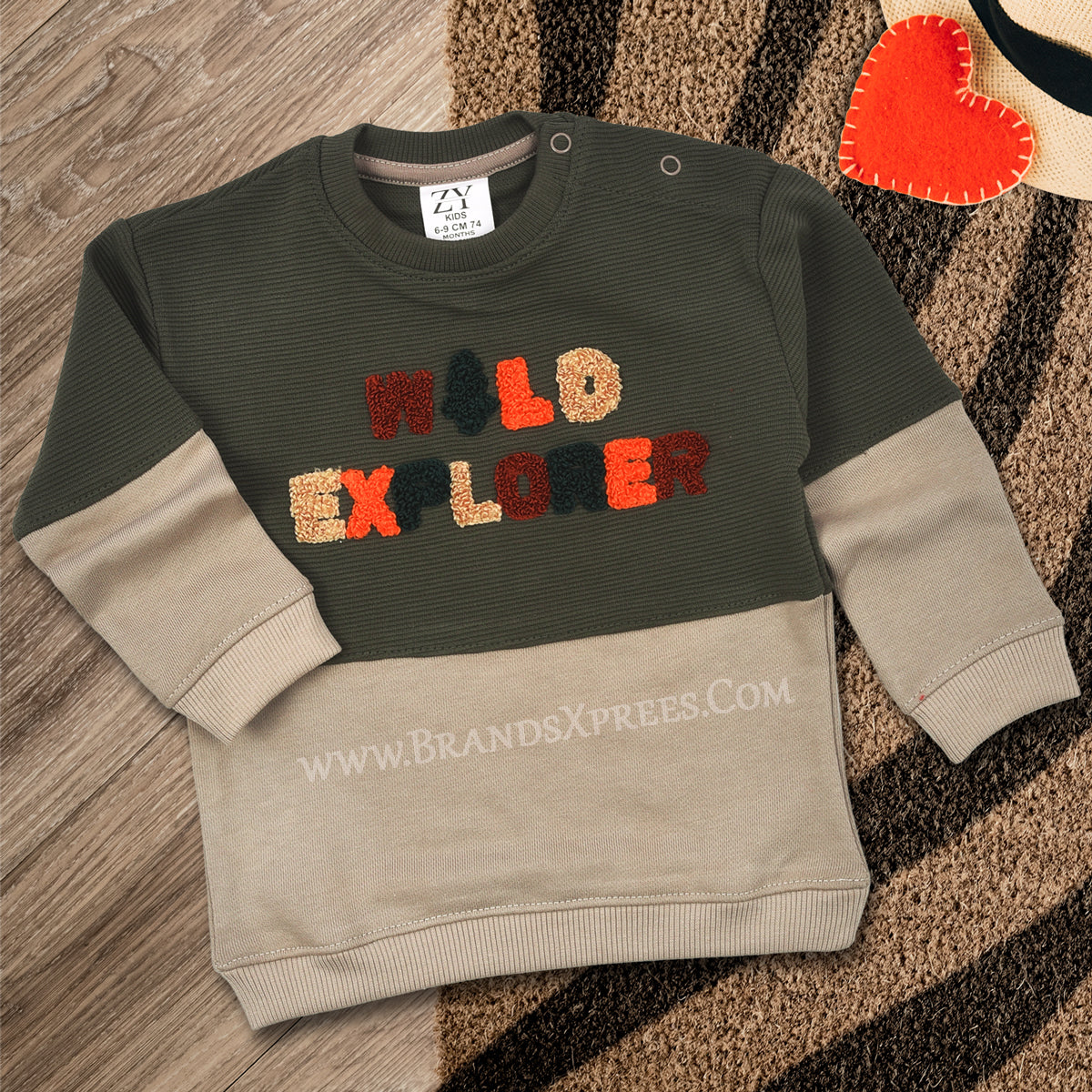 - ZY kids WILD EXPLORER Embroided Ottoman Olive Green & Base Terry Sweatshirt 13609